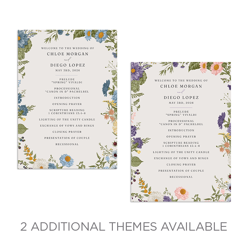 Elegant and versatile, our 5x7 Wedding Program features a timeless garden floral design with fully editable text—perfect for ceremony details, reception information, or any special event. Elevate your wedding stationery with this sophisticated and customizable touch from Blooming Garden.