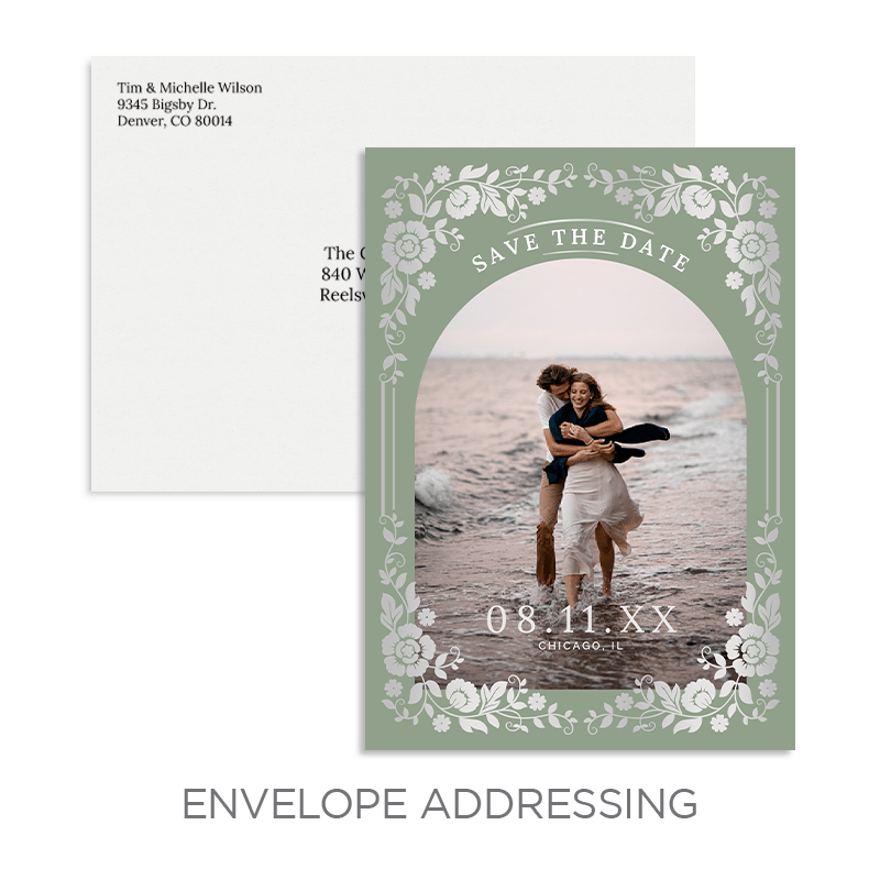 Announce your special day with the Gilded Garden Save the Date card, featuring stunning foil accents on soft-touch laminate cardstock and a beautiful photo on the front. Personalize it with your nuptial dates and details, edit the text, and customize the back with additional options to make it uniquely yours.