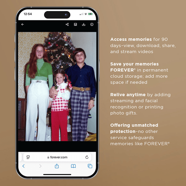That's right — FOREVER will save, protect, and make your memories available to be enjoyed now and for generations into the future.
