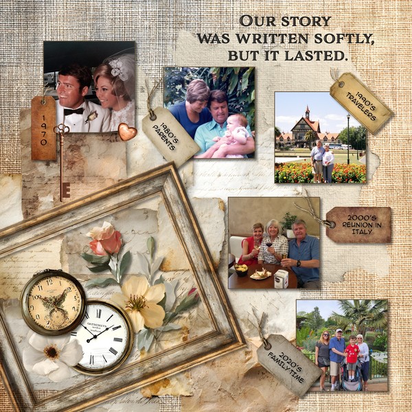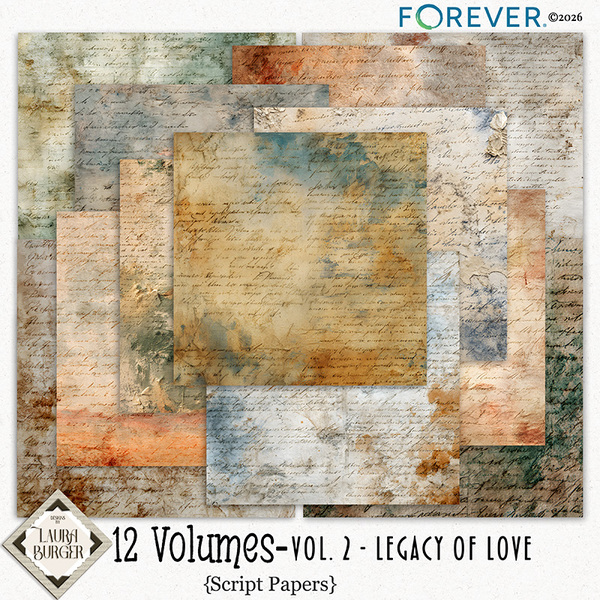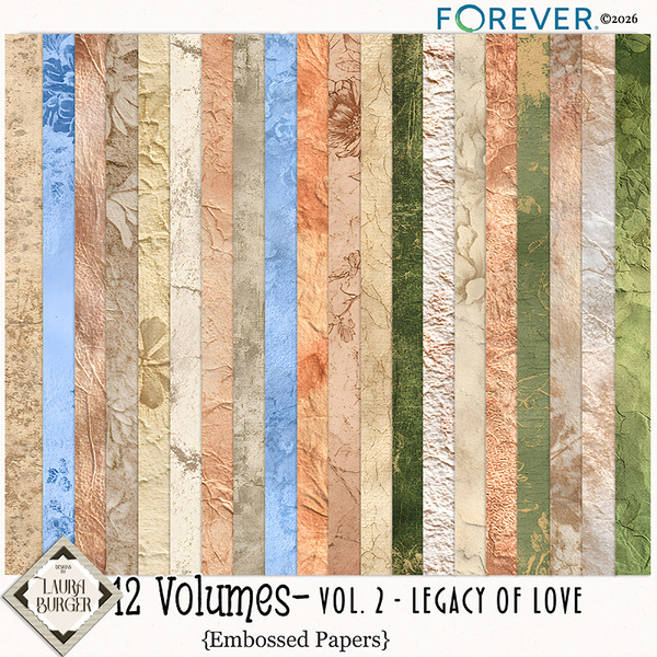 12 Volumes – Volume 2: Legacy of Love is a timeless digital scrapbooking bundle created to honor the stories, memories, and heartfelt moments that shape our lives. This collection blends rich heritage tones with soft romantic textures, giving you the perfect balance of warmth, depth, and elegance.Designed for documenting family traditions, generational stories, weddings, anniversaries, treasured photographs, and everyday love, this bundle brings a refined yet heartfelt aesthetic to your pages. Expect beautifully layered papers, vintage-inspired textures, subtle grunge, delicate lace details, and meaningful word art that speaks straight to the heart.Whether you're preserving old photographs or capturing today’s memories for tomorrow’s generations, Legacy of Love helps you create layouts that feel deeply personal and beautifully cohesive.Keywords: Designs by Laura Burger, Forever digital art, digital scrapbooking, memories, heartfelt, heritage tones, romantic, textures, elegance, wedding, love, relationships, script paper, embossed papers, fabric papers, flowers, bow, brad, clips. Envelope, key, masks, journal, heart, clock, label, stem, leaf, tag, word art, frame, stacked papers