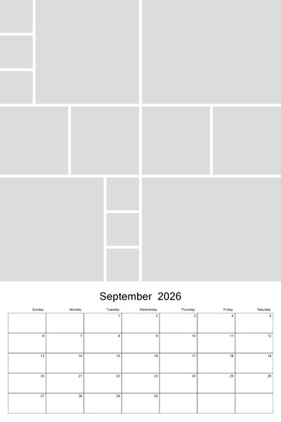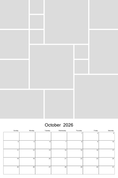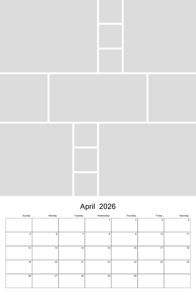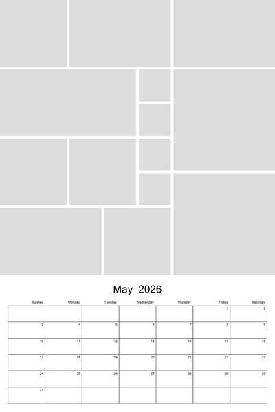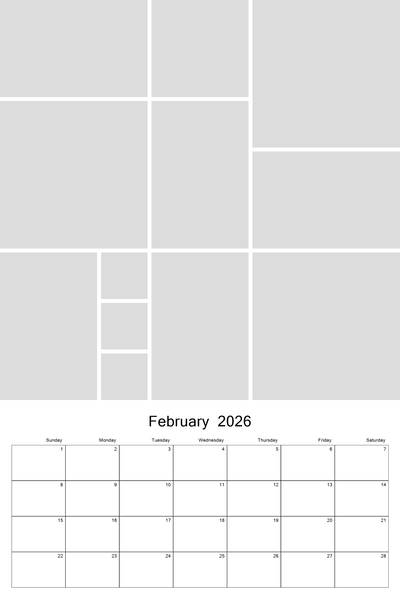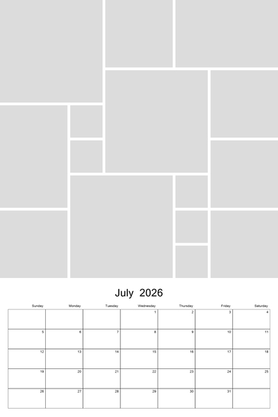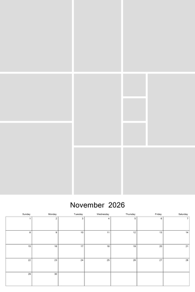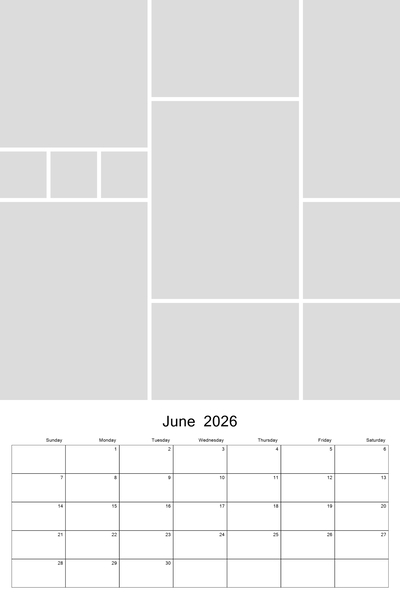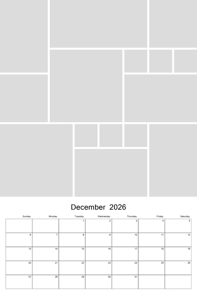 Create your 2026, 2027, 2028, 2029, or 2030 calendar with this customizable 12x18 collage calendar template.