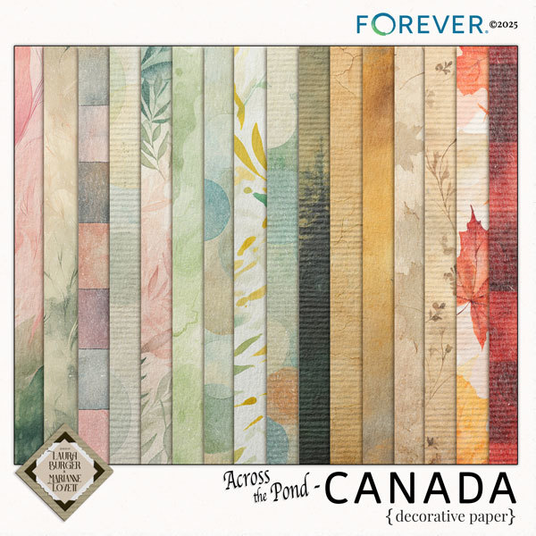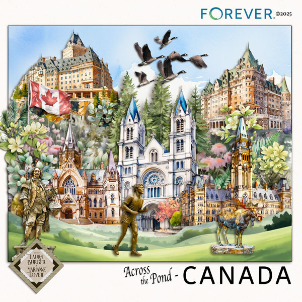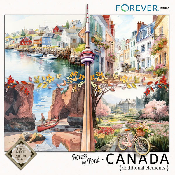 Across the Pond: CANADA is a richly layered digital scrapbooking megabundle that honors the spirit, scenery, and stories of Canada. Fromiconic landmarks and breathtaking natural wonders to cozy winter charmand cultural treasures, this kit offers an elegant celebration of theGreat North. Included are scenic backdrops like Niagara Falls and theNorthern Lights, rustic frames and overlays, detailed elements,seasonal papers, and nods to Canadian life- from hockey and maplesyrup to floral emblems and woodland wildlife. A special tribute tonational hero Terry Fox adds meaning and heart, capturing theresilience and inspiration at the core of Canadian identity.Designs by Laura Burger, digital scrapbook, Canada, Northern Lightsoverlay, Canadian landmarks, Niagara Falls, hockey, maple syrupelement, vintage Canadian paper, winter scrapbooking, decorativepapers, elements, Canadian Rockies, rustic photo frames, digital artCanada, totem pole, floral embellishments, overlays, frames, masks,winter scenes, travel, Terry Fox statue, seasonal paper pack, natureoverlays, watercolor maples, Canadian icons, bicycle, canoe, garden,goose, leaf, rocks, tower, town, wharf, branch, building, flag, geese,hills, moose, statue, Terry Fox, tree, canvas, chair, flower, frame,maple leaf, torn paper, beanie, beaver, cabin, chandelier, climber,coin, hot chocolate, ice house, jacket, pancakes, passport, polarbear, skier, snow globe, suitcase, syrup, tea tray