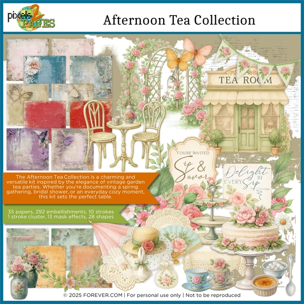 Includes the Afternoon Tea Collection, Photo Arrangements, Cluster Groups, and Decorative Frames which are all available as separate kits. Save by bundling. NOTE: The Afternoon Tea Collection and Decorative Frames kits are part of the Pixie Land Deal of the Day.