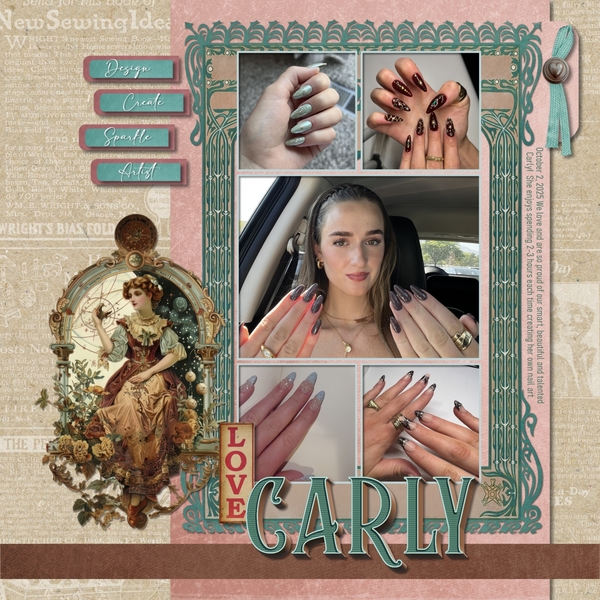 This green decorative alpha set is easy to use for digital scrapbook page titles and inspired by the style of art and architecture that flourished between 1890 and 1910. With muted colors inspired by plants, flowers, and the female form, this vintage collection will add style to your vintage, genealogy, and family heritage pages. Great for garden and spring pages, too! The Art Nouveau Alpha Set consists of a full set of digital art uppercase alphabet letters A-Z, numbers 0-9, and most punctuation marks. This alpha set is available as individual embellishments and as an alpha set / fancy font. This kit is included in the Art Nouveau Bundle. Designer: Roxanne Buchholz, Lucky Girl Creative