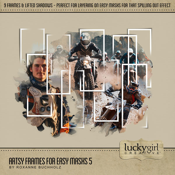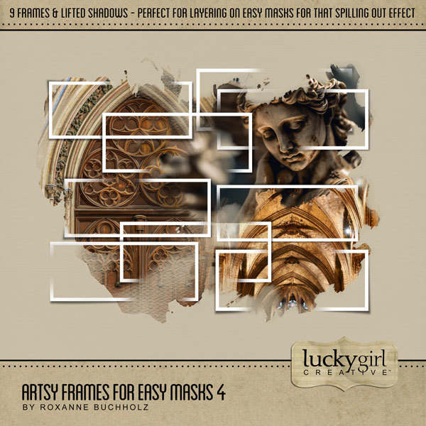 BRAND NEW for the The Pixie 500 Virtual Crop on Friday, April 17 - Sunday, April 19, 2026! Offered at an introductory low price of $39.95. Retail Value: $49.75. With the 45 Enhanced Digital Art clusters, you can ungroup these layered group clusters (frame + separate lifted shadows) to customize and fit your needs. Each embellishment is on a separate layer giving you the flexibility to colorize, add papers, or add effects to your frames. Use as is or ungroup, move, re-size, or delete elements. Also provided are an additional 45 embellishments with the white frame and lifted shadow as a flattened embellishment for super fast & easy application. Simply drop the frame on top of your Easy Mask for that spilling out look! This bundle includes Artsy Frames for Easy Masks 1, Artsy Frames for Easy Masks 2, Artsy Frames for Easy Masks 3, Artsy Frames for Easy Masks 4, and Artsy Frames for Easy Masks 5. Designer: Roxanne Buchholz