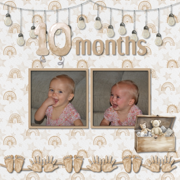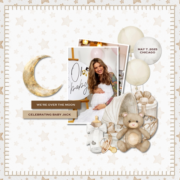 Capture the special moments of your baby boy or baby girl with this neutral and versatile baby digital scrapbooking embellishments kit that adds a touch of watercolor to your page.