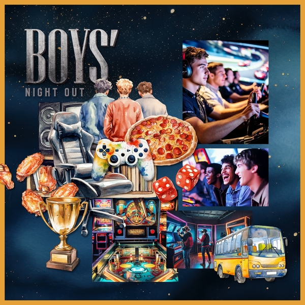 Let's have some good, clean fun with this watercolor men's bachelor party inspired kit filled with lots of sports, games, and food. Also great for boys night out, prom, high school, college, university life, fraternity houses, and other social activities. Embellishments include arcade game, party bus, casino, dice, gambling, slot machine, playing cards, ace, heart, king, poker chips, roulette wheel, cigar, bow tie, denim jacket, jeans, ball cap, jacket, blazer, coat, shoe, loafer, after shave, credit card, crown, stripper, pole dancer, beer bottle, beer, ice bucket, keg, red solo cup, beer pong, bar cart, shot, tequila, whiskey, BBQ, barbecue, wings, chili pepper, cake, cookies, French fries, hamburger, hot dog, hot sauce, ice cream, pizza, seafood platter, shrimp cocktail, steak, tacos, game controller, video game, gaming chair, heartbeat, heart, hot tub, jacuzzi, hotel, leather couch, sofa, lighter, locker, clover, shamrock, overnight bag, duffle bag, luggage, suitcase, men, friends, boys, boy, man, masculine, money, cash, helmet, motorcycle, paintball, palm tree, passport, lounge chair, product, mini fridge, sauna, skull, tattoo, baseball bat, baseball, bowling, boxing glove, darts, target, golf bag, golf clubs, golf cart, putting green, golf shoe, tee, pickleball, ping pong, pool, soccer, sports car, automobile, sunglasses, shorts, swim trunks, trophy, tv, television, retro, wallet, and watch. Designer: Roxanne Buchholz, Lucky Girl Creative