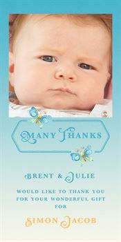 Be My Baby (Boy) 4x8 Cards Announcement and Thank You. Predesigned Flat Cards by Templates and Co. Create a beautiful personalized announcement or thank you card for the amazing addition to your life with this set of 2 pre-designed and fully customizable card templates. Embellishments included