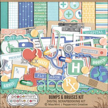 What's up Doc? Heal those aches & pains with the perfect scrapbook page! From a cold & flu to those dreaded hospital visits, this kit has got you covered. These medically mellow papers in soft colors are the perfect compliment your photos.