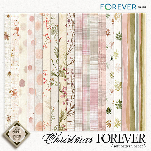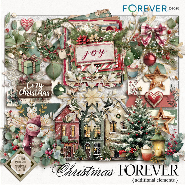 Capture the magic of the season with Christmas Forever, a beautifully curated holiday bundle filled with softly painterly elements, warm village scenes, layered greenery, and timeless Christmas charm. This collection brings together rich clusters, cozy winter icons, artistic masks, and an elegant range of soft grunge, pattern, and solid papers. Designed to make every page feel heartfelt and nostalgic, Christmas Forever helps you create layouts that glow with comfort, joy, and the wonder of classic Christmas storytelling. Keywords: Christmas Forever, Christmas bundle, holiday scrapbook kit, winter scrapbook, festive elements, Christmas village, snowman, Christmas tree, ornaments, holiday greenery, wreaths, bows, gifts, cozy Christmas, painterly elements, soft grunge papers, pattern papers, solid papers, enhanced masks, winter textures, Christmas houses, seasonal layouts, digital scrapbooking, Forever digital art, designs by Laura Burger, Marianne Lovett, Christmas crafting, holiday storytelling, timeless Christmas, festive colors, winter scenes, artistic elements, scrapbook bundle, holiday creativity, Christmas memories