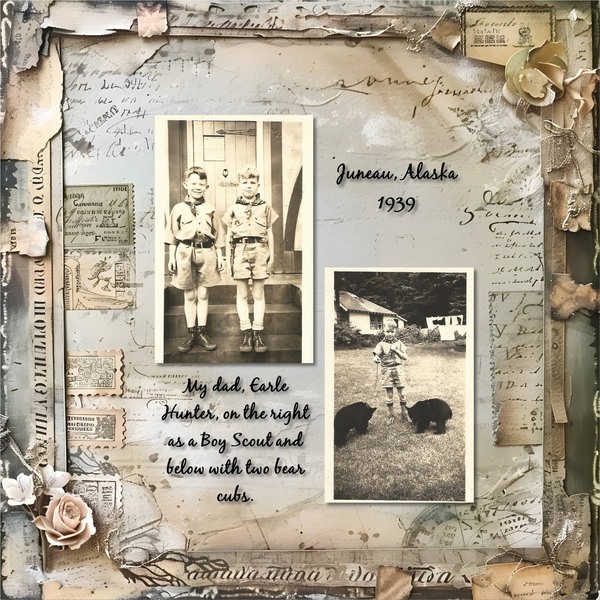 A set of background papers featuring elements that are incorporated into the background to enhance your photographs. Easy layouts involve adding a picture or two and some journaling, and you have a fun, easy, and memorable layout. Keywords: Clustered border, Designs by Laura Burger, Laura Burger, detailed background, easy, fast, texture.