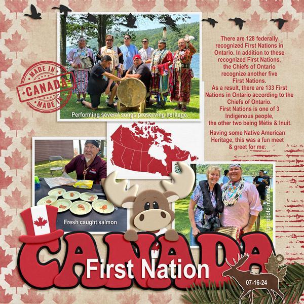 Discover Canada Kit - Celebrate Canada Day with this beautiful Kit. Included are 22 12"x12" Papers and 52 Elements. All of the following elements are included: 2 antlers, 1 arrow, 1 beaver, 2 leaf charms, 1 deer, 1 line of geese, 1 goose, 1 pine piece, 2 hats, 1 hockey puck, 2 hockey sticks, 3 journal cards, 3 labels, 2 maple leaves, 1 map of Canada, 8 moose, 1 maple seed, 1 snowshoe, 1 stamp, 1 twig, 1 jar of syrup, 7 word art / titles, 6 wood chips. Note - this Kit is also sold within the Discover Canada Bundle.