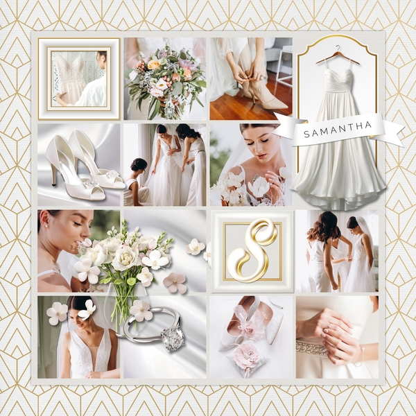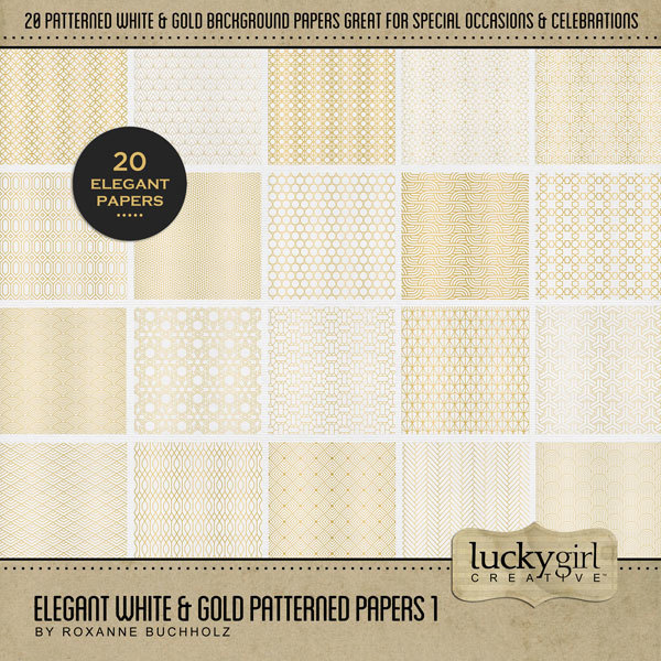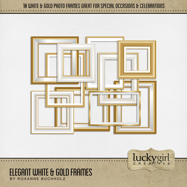 BRAND NEW for the The Pixie 500 Virtual Crop on Friday, April 17 - Sunday, April 19, 2026! Retail Value: $36.75. Accent your special occasion pages as well as everyday pages with these beautiful and versatile gold and white embellishments, papers, and alpha set. Great for wedding, graduation, prom, and more! This bundle includes Elegant White & Gold Frames, Elegant White & Gold Labels 1, Elegant White & Gold Robbins, Elegant White & Gold Script Alpha, and Elegant White & Gold Patterned Papers. Designer: Roxanne Buchholz, Lucky Girl Creative