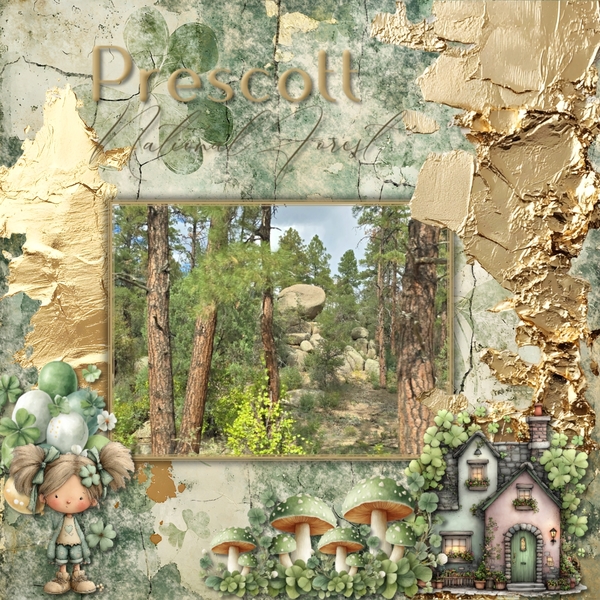 This thoughtfully designed digital scrapbooking kit blends rich greens, weathered textures, and artistic watercolor elements with touches of rustic charm and gentle whimsy.