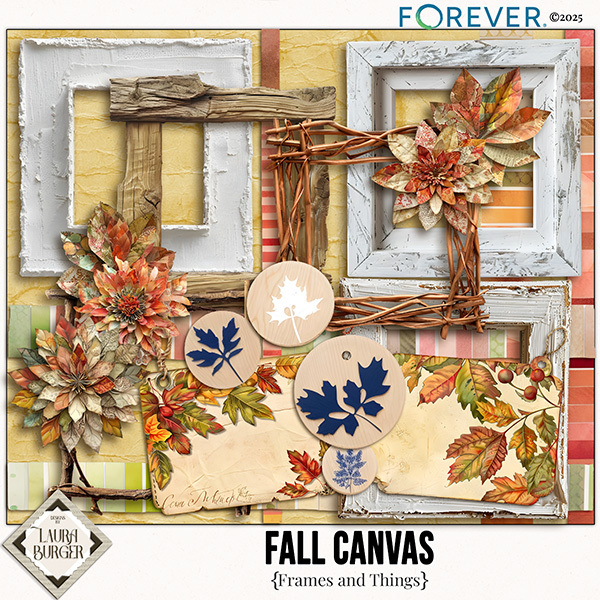Celebrate the beauty of autumn with the Fall Canvas Bundle, a cozy digital scrapbooking collection filled with rich seasonal colors and natural textures. This bundle includes canvas-inspired background papers, duos papers that you can use for double page layouts, and painterly grunge textured papers perfect for creating warm, rustic layouts, fall journals, and printable crafts.With shades of burnt orange, golden yellow, pink sherbert, warm lavender and soft greens with a bit of blue, this collection is ideal for Thanksgiving projects, autumn photo albums or mixed media art.Keywords: Forever, Forever Digital Art, Designs by Laura Burger, Fall Canvas Bundle, Fall digital scrapbooking kit, Autumn background papers, Autumn digital papers, Rustic fall scrapbook papers, Thanksgiving digital kit, cozy autumn scrapbook collection, acorn, brad, button, pumpkin, foliage, fall leaves, berries. Sunflower, flowers, journal, notebook, layered frames, wax seals, butterfly