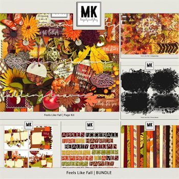 Feels Like Fall - Page Kit by Mandy King Includes ten patterned papers, eight solid papers, an apple, banner, berries, bow, butterfly, six buttons, doily, falling leaves scatter, fence, three round flairs, nine flowers, four frames, greenery, heart, hedgehog, two journal cards, two journal spots, six word labels, two fall leaves, metal owl, sequin scatter, three fall stamps, plain staple, decorated staple, stitching, string, tag with ribbon, tag with string, lace, ricrac, four ribbons and three word arts.Part of the Feels Like Fall Collection and also included with the Feels Like Fall Bundle