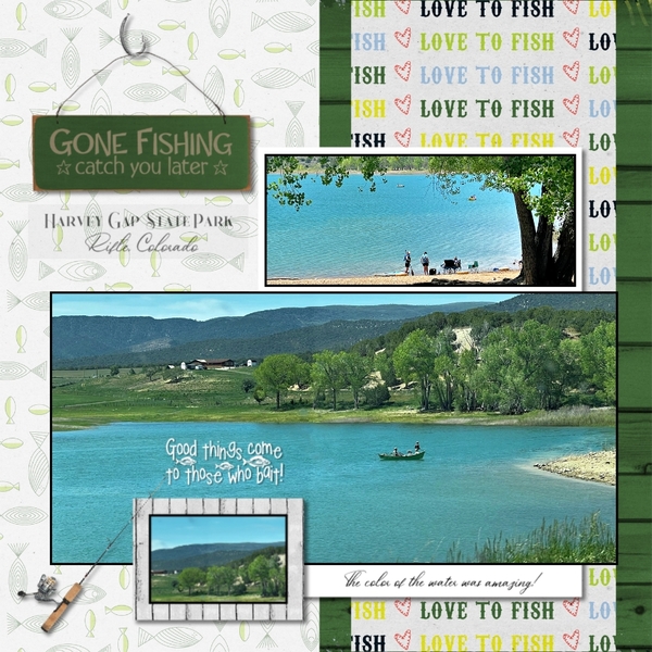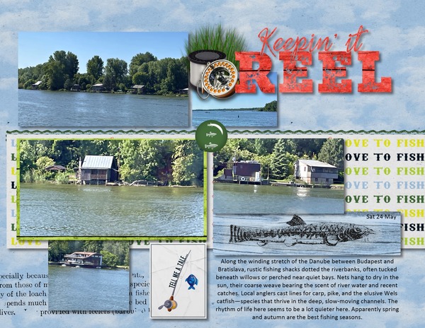 Fish stories are as much a part of summer as sunshine and rainshowers.The "one that got away", the great times with family and friends and the funny or amazing happenings while out fishing are told over and over. The Fish Tales Workshop discounted bundle from Across the Pond Designs provides everything you need to tell the tales in all your projects. Each pack is available for individual purchase or you can get it all in the discounted bundle. This purchase is for Fish Tales Workshop - Discounted Bundle; it includes the entire Fish Tales Collection: alpha, clusters, edgers, embellishments, hooks & lures, patterned papers, stamps, tackle and word art.. Sample pages are created using this collection and thus may show content that is not part of the individual pack.
