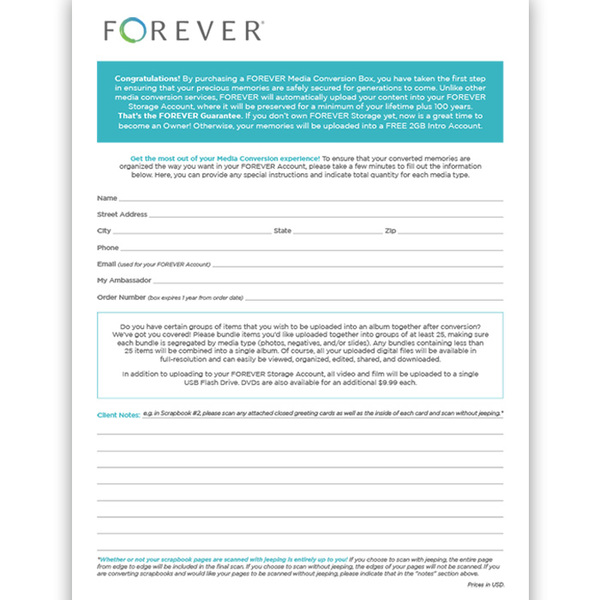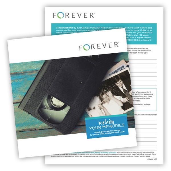 Two of the 8 page media services conversion booklets with detailed instructions on how to prepare your memories for conversion. Also included is two Media Services client information order forms.