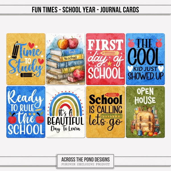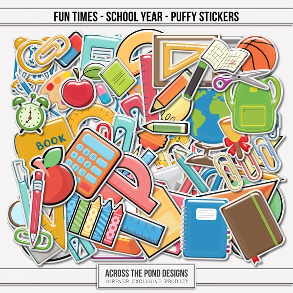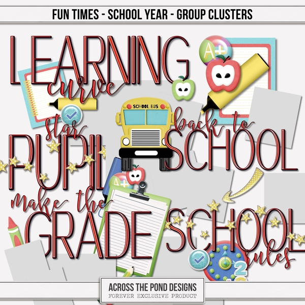 Fun Times School Year Bundle is the perfect way to capture the laughter, milestones, and everyday moments of the school years. Designed especially for elementary and middle school memories, this playful and colorful bundle brings a cheerful touch to your pages.With five beautifully enhanced group clusters, you'll find it easy to build layouts that look polished and fun. The set also includes one hundred coordinating embellishments featuring school-themed elements like pencils, books, backpacks, and playful doodles that add personality to every memory. A matching alpha set ties everything together, helping you add titles and captions that pop.From the first day of school to field trips, class parties, and last-day celebrations, the Fun Times School Year Bundle helps you preserve those special moments with style and a smile.