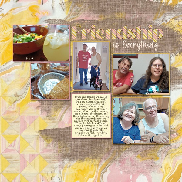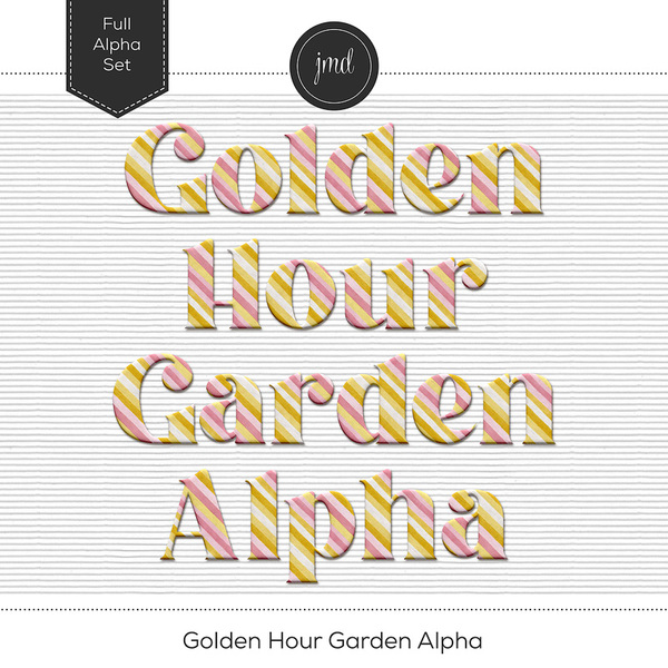 Golden Hour Garden is a cheerful blend of vibrant color, vintage charm, and soft floral elegance. With 70 seamless papers across three coordinating kits, this collection offers a rich mix of hand-drawn florals, warm-weather plaids, delicate damasks, and whimsical geometrics. A warm palette of golden yellow, blush pink, and soft neutrals adds cozy depth to each design. The coordinating alpha includes a full set of uppercase and lowercase letters, numbers, and punctuation, all styled with painterly pink and yellow stripes. Whether you're scrapping sunlit memories, garden adventures, or everyday joy, this bundle offers a beautiful foundation for storytelling. This bundle includes the following kits: Golden Hour Garden Patterns 1, Golden Hour Garden Patterns 2, Golden Hour Garden Solids, and Golden Hour Garden Alpha. This kit was part of the Summer Extravaganza Grab Bag.