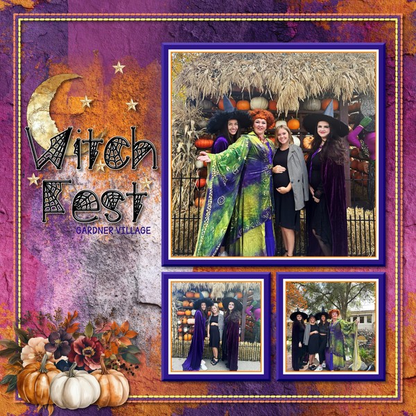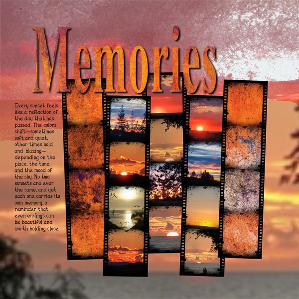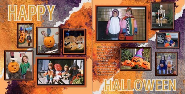 Grunged Color Tones – Twilight blends fiery orange and deep violet in a dramatic mix of distressed designs, perfect for bold backgrounds and Halloween pages.
