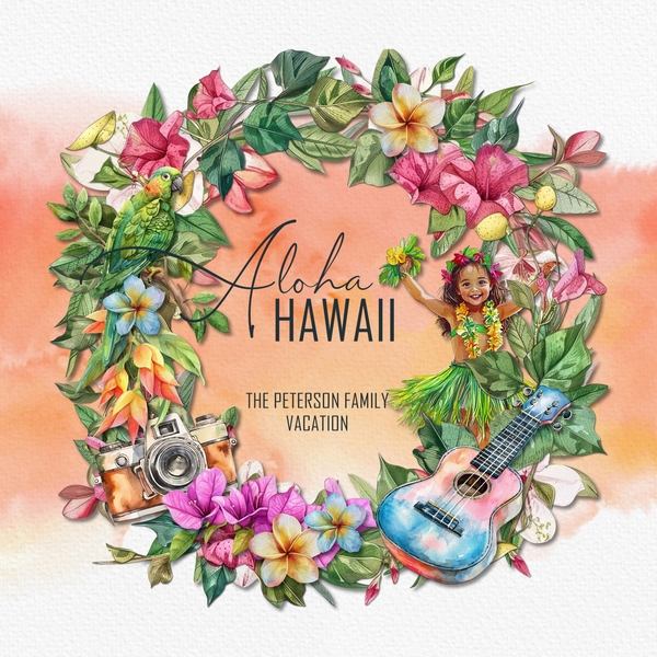 Add these beautiful watercolor embellishments and papers to all your Hawaiian, Caribbean, summer, and tropical digital scrapbooking pages and albums! Great for vacations to Hawaii, Caribbean, the South Pacific, Polynesia, and other tropical beach and ocean locations. Embellishments include flamingo, parrot, crab, dolphin, fish, marlin, gecko, octopus, oyster, lizard, iguana, reptile, sea turtle, sting ray, tropical fish, whale, luau, orca, bamboo, beach towel, cruise ship, sailboat, speed boat, camera, Hawaiian shirt, coral reef, cocktail, drink, beverage, tiki, flip flops, lei, ceviche, Hawaiian pizza, poke bowl, sushi, guava fruit, mango, pineapple, rambutan, starfruit, Hula girl, grass skirt, ukulele, jet ski, King Kamehameha, beach, landscape, shore, island, lagoon, tiki hut, volcano, waterfall, lava rocks, banana leaf, palm leaf, lifeguard station, lounge chairs, umbrella, beach chairs, anchor, nautical, captain's hat, palm trees, pool float, life preserver, rainbow, sandcastle, pearl in shell, sea urchin, shells, seashells, starfish, surfboard, swim trunks, shorts, bathing suit, swim suit, tiki torch, tropical flowers, Bird of Paradise, hibiscus, bougainvillea, fynbos, beach volleyball, and wave. This kit is included in the Hawaii Watercolor Bundle and includes the Hawaii Watercolor Elements and Watercolor Orange Sherbet Papers. Designer: Roxanne Buchholz, Lucky Girl Creative