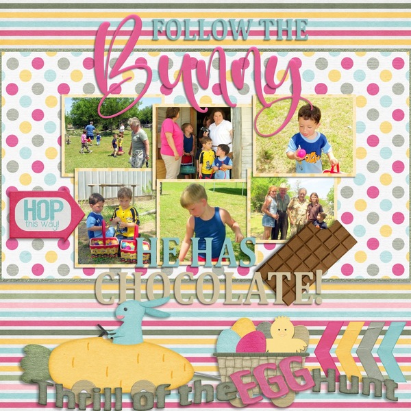 Hippity Hoppity Easter Enhanced Photo Clusters - Remember taking your kids to see the Easter Bunny at the mall? Or going yourself as a kid? Our local mall Easter bunny was actually a terrifying creature - oh, the crazy photos we have! Fortunately, this HIPPITY, HOPPITY EASTER is all things ADORABLE and CUTE - perfect for your little bunny. This is a set of Six 11" ENHANCED PHOTO CLUSTERS. Add from the Embellishments Tab; then ungroup to customize. You can use them as-is, or change the color of each element. Resize the photos to fit your layout. Accent with papers and elements from the Hippity Hoppity Bundle or your favorite Easter kits! This pack is NOT included in the Bundle.