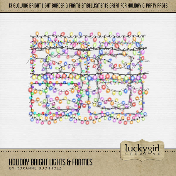 Sparkle and shine this holiday season with these brightly colored holiday light embellishments, papers, and alpha set. Great for Christmas, birthday, party, celebrations, and more! This bundle includes Holiday Bright Bokeh Papers, Watercolor Holiday Lights Papers, Holiday Bright Lights & Frames, Holiday Bright Lights Alpha Set, and Holiday Bright Lights Marquee Frames. Designer: Roxanne Buchholz, Lucky Girl Creative