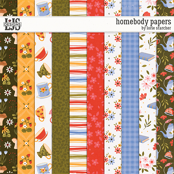 Homebody by LJS Designs is a digital scrapbooking kit for those people, like me, who prefer the comfort and beauty of their own home to anywhere else. If you would rather be home reading, gardening, or just taking it easy than be out on the town, this is the perfect kit for you. Buy the Bundle and get the kit and coordinating packs at a special price.