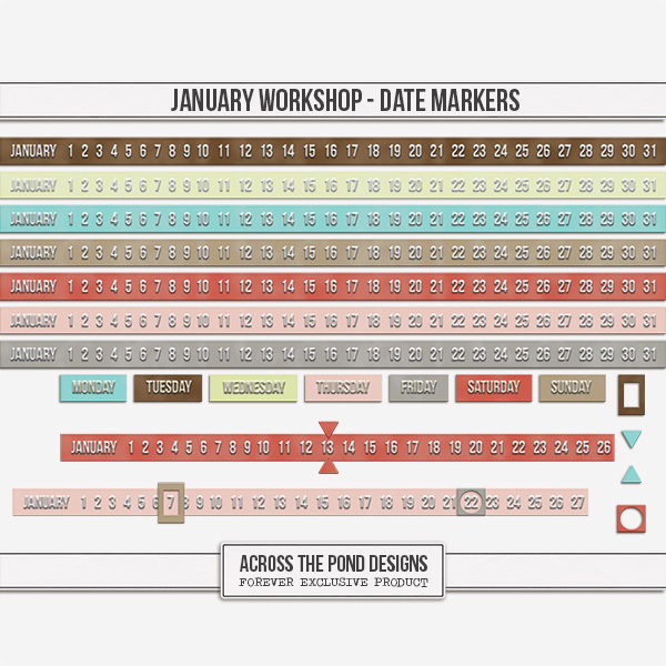 - Contains: The entire January Workshop collection: page kit, text papers, edgers, date markers and templates