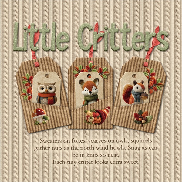 The Knit in Autumn Kit brings handmade charm to your pages with whimsical knit-textured animals, florals, and cozy sweater backgrounds. Each piece was designed to feel like a soft, stitched masterpiece bursting with autumn color and texture. Included Kits: Knit in Autumn Embellishments and Knit in Autumn Backgrounds.