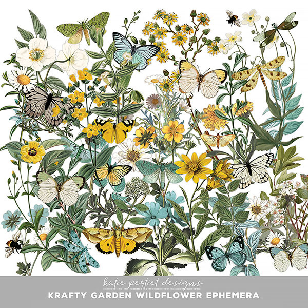 Summer outdoor themed bundle. Keywords: 49M, blue, botanical, bundle, chipboard, collection, daisies, daisy, green, kit, kraft, krafty, krafty garden, nature, neutral, outdoors, vintage, vintage artistry, yellow Designer: Katie Pertiet