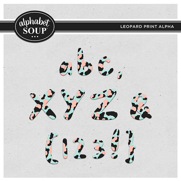 Add the perfect title or word art to your page with alphas by Alphabet Soup. This purchase is for the Leopard Print Alpha. It includes a-z, A-Z, 0-9 and punctuation.