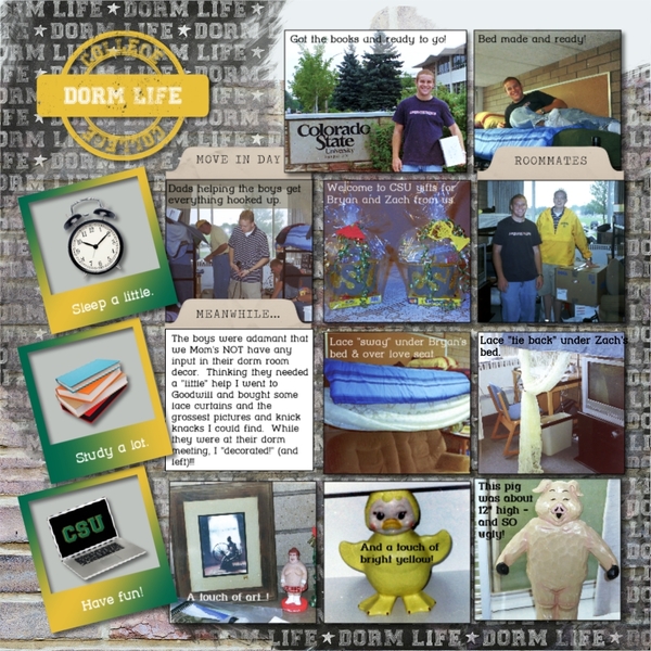 Grown up and perfect for college (and high school) life, this collection is an A+ to document your college student's daily activities, encouraging them to always aim high, and conquering their new world. Keywords: computer, coffee, alarm clock, pizza box, money, coffee pot, books, water, school supplies, teacher, student, university, professor, dorm, laundry, earbuds, computer tablet, soda can, folder tabs, exam, sorority, fraternity, campus life, move in day, graduation, roommates, apartment, high school, beanbag, bean bag, freshman, sophomore, junior, senior, graduate, grad
