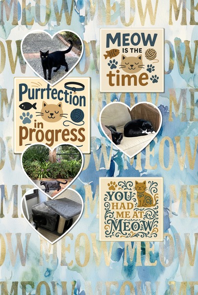 Memory Magnets - It's a Cat's Life - 6 papers, 4 enhanced art group clusters, 8 fridge magnets