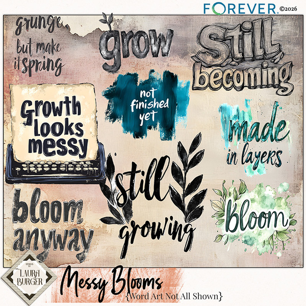 Celebrate creativity in full bloom with the Messy Blooms Mega Bundle, a beautifully imperfect digital scrapbook collection where watercolor florals meet artistic texture and expressive design. This bundle embraces the charm of paint splatters, layered petals, soft brush strokes, and gently grunged details — perfect for storytellers who love their memories a little wild, a little whimsical, and wonderfully real.Overflowing with hand-crafted floral elements, mixed media accents, textured papers, and painterly embellishments, Messy Blooms captures the feeling of creativity unfolding naturally — like flowers growing where they please. From delicate blossoms and leafy clusters to ink smudges, stitched accents, and artsy overlays, every piece is designed to help you build richly layered layouts full of movement and personality.Keywords: messy blooms scrapbook kit, floral digital scrapbook kit, mega scrapbook bundle, watercolor floral scrapbook elements, mixed media scrapbook kit, grunge floral scrapbook papers, artsy digital scrapbook kit, painted flower embellishmentsdigital scrapbook flowers, floral scrapbook bundle, textured scrapbook papersmixed media floral kit, shabby floral digital kit, art journal scrapbook suppliesartsy grunge scrapbook bundle, mixed media paper textures, Designs by Laura Burger, Forever Digital Art