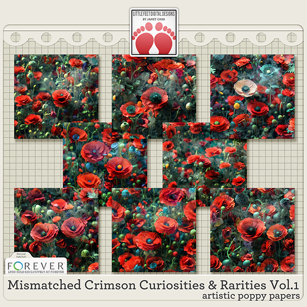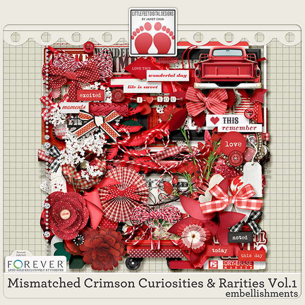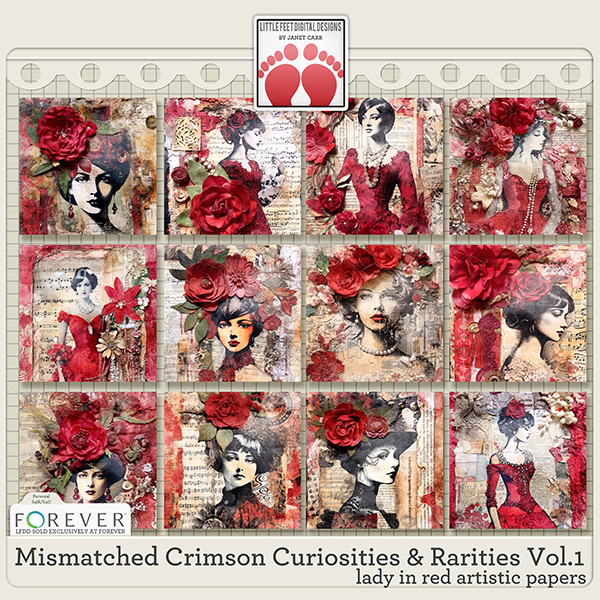 Step into a wonderland of eclectic and bold nostalgia with Mismatched Crimson Curiosity and Rarities - a digital scrapbook kit drenched in deep red tones with striking splashes of black for contrast and mystery. Inspired by the charm of antique shops and curiosity cabinets, this eclectic collection is a delightful mismatch of forgotten treasures and vintage oddities. From timeworn tags and aged trinkets to bold florals, quirky embellishments, and layered textures—each piece whispers stories from another era. Perfect for art journaling, memory keeping, or creative play, this kit invites you to explore the beauty in the unexpected.Where crimson meets the curious—let the adventure begin.