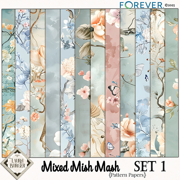 When these masks, mask effects, and pretty papers come together, they do more than fill a gap—they complete the collection with grace. The interplay of concealed shapes, luminous effects, and exquisite surfaces creates a visual symphony, pleasing to both the eye and the spirit.Whether you are assembling a scrapbook, designing greeting cards, or curating an artistic journal, this curated set will provide the finishing touches your collection craves. Keywords: Masks, Mask effects, Designs by Laura Burger, Laura Burger, Forever digital art, Forever, mask borders, floral papers