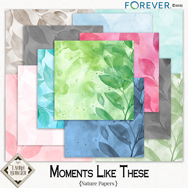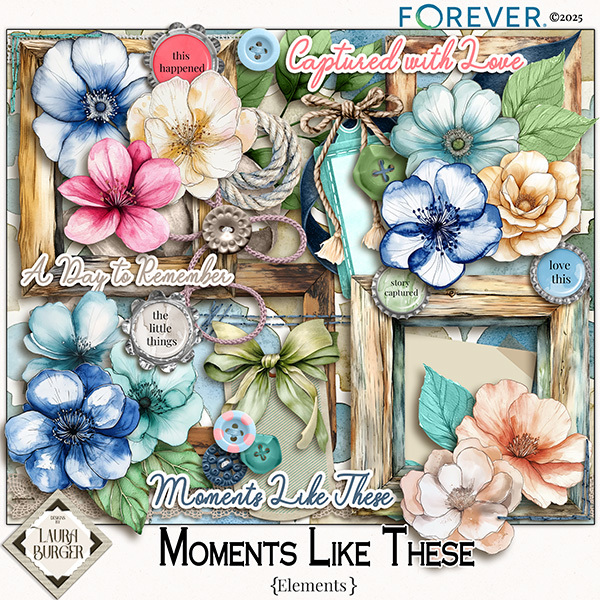 Celebrate the little things that mean the most with Moments Like These, a beautifully curated digital scrapbooking kit designed to help you capture everyday magic. This collection is filled with soft textures, heartfelt word art, and charming embellishments perfect for documenting life’s fleeting yet unforgettable moments — from quiet mornings to spontaneous adventures. Inside, you’ll find a mix of patterned papers, delicate nature papers, photo frames, and inspiring prompts that invite you to pause, reflect, and preserve your story. Whether you’re scrapbooking family memories or crafting a photo album of life’s simple joys, Moments Like These will add warmth and a touch of timeless beauty to every page. Hold onto the moments that matter — because it’s the little things that make life truly special. Check out the coordinating alphabet and numbers set. Keywords: Designs by Laura Burger, pink, pastel pink, grass green, aqua, light blue, dark blue, beige, tan, dark brown, flowers, watercolor, memories, digital scrapbooking, ribbon, frames, bow rope, stems, foliage, leaves, lace, words, bottle caps. Masks, journal, texture, 12x12, 300dpi., staple, stitches, bouquet, word art, buttons, tag, string