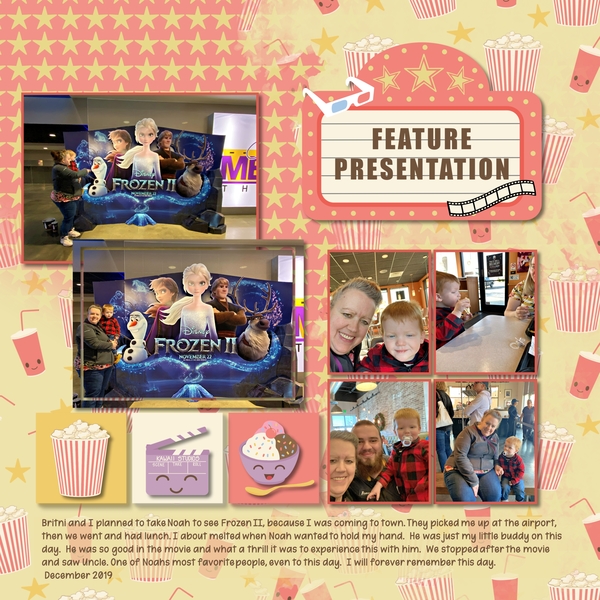 All embellishments are hand drawn by J. Ovenell Designs. No A.I. and no purchased clipart were used to create this kit. Movie Magic is a kawaii-stylel kit filled with charming cinema-themed illustrations, from film reels to popcorn, hot dogs, a cozy bean bag chair and comfy couch vibes. Whether you're scrapping a night at the theater or a movie marathon at home, this kit has everything you need to tell the story.