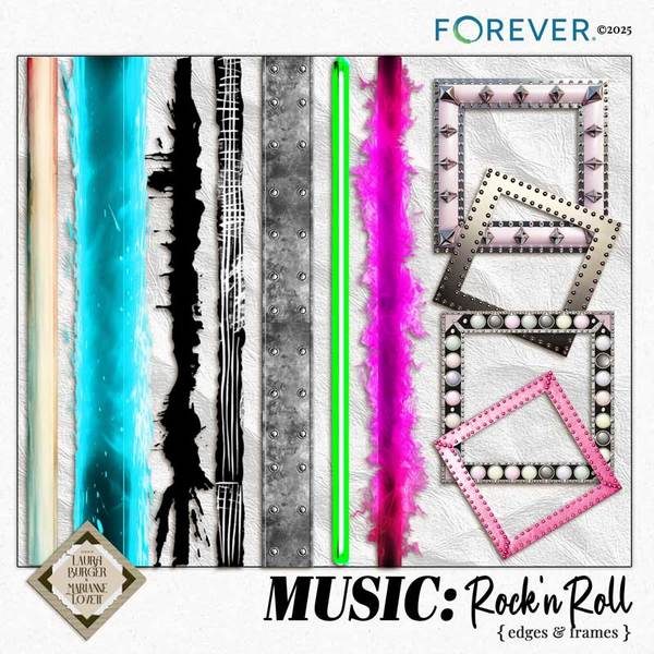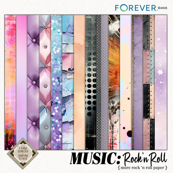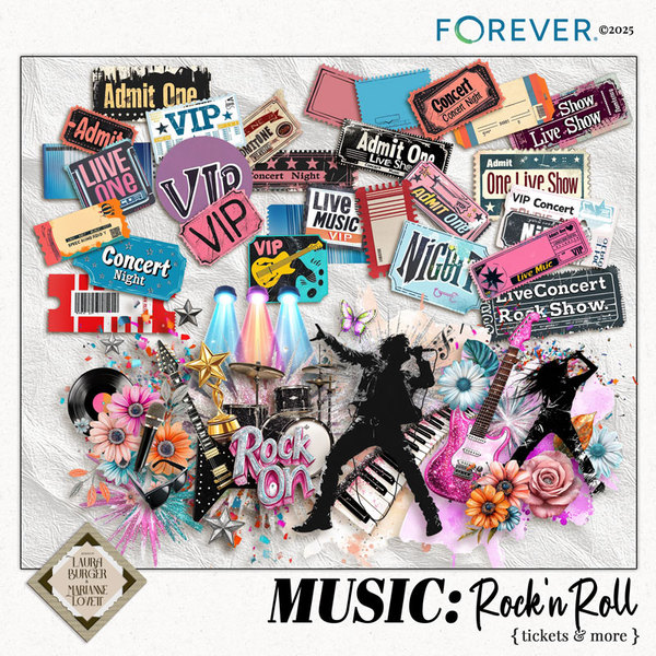 Turn up the volume and bring your pages to life with the MUSIC: Rock n’ Roll Bundle, an electrifying celebration of concerts, big stages, and unforgettable nights. Bursting with vibrant color, glittering guitars, neon lights, VIP tickets, dramatic silhouettes, and boldartistic textures, this bundle captures the thrill of live music. Whether you’re scrapping real concert photos, talent show moments, garage-band memories, or layouts full of energy and attitude, these enhanced clusters, dynamic elements, neon edges, studded frames, and stunning rock-and-roll papers will take your creativity center stage. Perfect for performers, music lovers, fandom layouts, and everyone who lives life loud.Keywords: rock n roll kit, music digital scrapbook, concert scrapbook, live music layouts, talent show scrapbooking, VIP tickets, concert tickets, rock star elements, electric guitar, drums, microphone, neon lights, stage lights, silhouettes, glitter guitar, studded frames, neon edges, confetti, dramatic clusters, enhanced clusters, music theme papers, artistic textures, grunge papers, graphic papers, rock concert, performance photos, musician pages, scrapbook bundle, rock on, designs by Laura Burger, Marianne Lovett, Forever digital art, vibrant colors, upbeat layouts, energetic scrapbook kit, music memories
