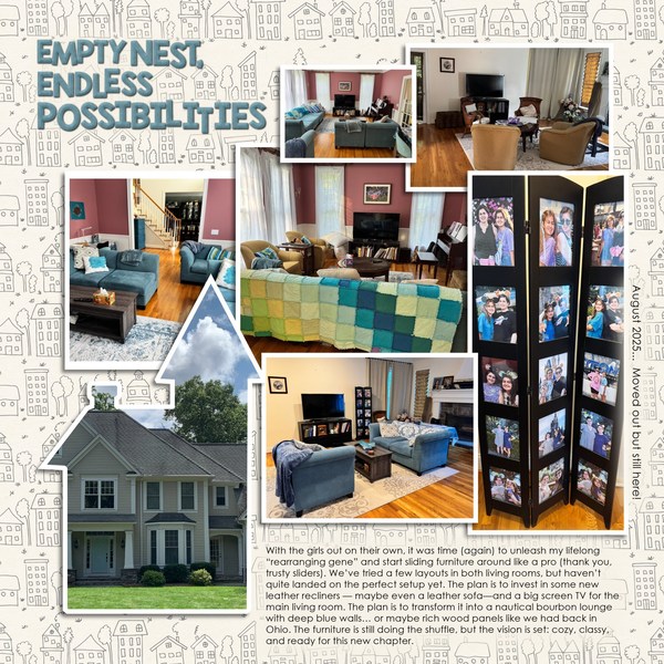 My House Enhanced Photo Clusters - What are your favorite things about your home? What are your favorite rooms? Your favorite memories? Have you done home renovations? Purchased new appliances? Replaced the roof? Finished a basement? Show off all of the things you love about your home with this MY HOUSE collection. This series coordinates with the MY TOWN collection so you can mix & match! This is a pack of 6 11" ENHANCED PHOTO CLUSTERS that coordinate with the My House & My Town Series. Drop in your photos, add a background paper, and some journaling. You can ungroup & customize each photo cluster - resizing, reordering, or recoloring any part! Be sure to check out the rest of these collections.