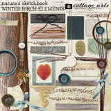 Kit includes 32 realistic nature inspired elements: 5 distressed word art overlays, bark borders, tags, mats, twig cluster, canning jar frames, ornate shelf, wooden elements, linen bag, hand-painted flowers with buttons, tape, staples, and more Some of the elements come with and without realistic drop shadows. **This kit is included in our Winter Birch Collection.** Cottage Arts' Designer: Michelle Shefveland