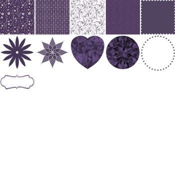 Use the A Formal Affair Purple Accents to add a splash of color to layouts created using the A Formal Affair Kit or on its own for beautiful purple colored layouts. Elements include heart shaped and round jewel as well as flowers. This kit is perfect to scrap a wedding with this accent color.