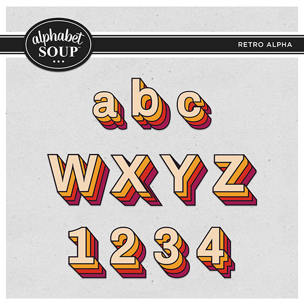 Add the perfect title or word art to your page with alphas by Alphabet Soup. This purchase is for the Retro Alpha. It includes a-z, A-Z, 0-9.