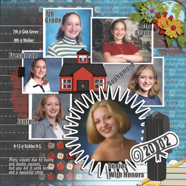 School Bound Enhanced Photo Clusters - It's time for school, and you've got at least dozen years of school scrapbooking to do! The School Bound series helps you scrap every year from preschool through graduation. Need more? The College Bound collection uses the same color palette so you can mix-n-match between them. This is the School Bound ENHANCED PHOTO CLUSTERS. It contains 6 large enhanced photo clusters. Add from the Embellishments Panel. Then ungroup to customize. Drop in your photos; you can resize, re-layer, or re-adjust any of the parts. Use with any parts of the School Bound series or any of your favorite kits!