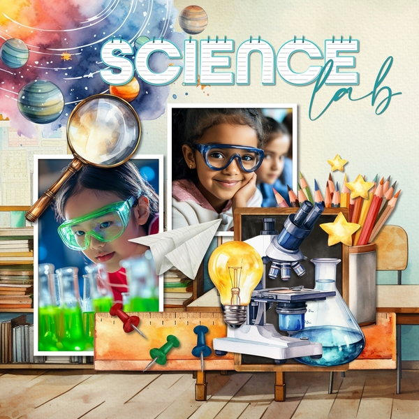 Add fun watercolor embellishments to all your school digital scrapbooking pages showcasing your primary and elementary school students.