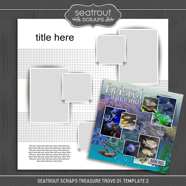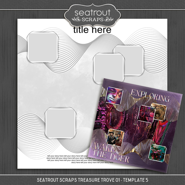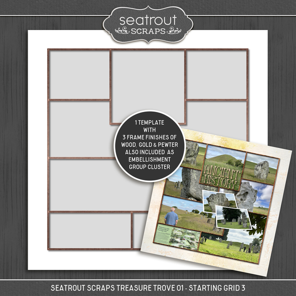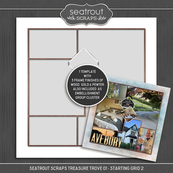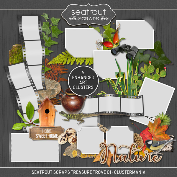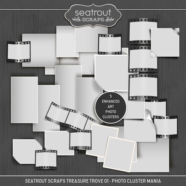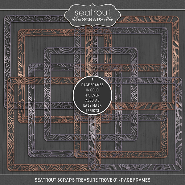Seatrout Scraps Treasure Trove 01 truly lives up to its name, bringing together a substantial collection of brand new exclusive products in one comprehensive bundle that will not be released separately at any later date. Included within this bundle are 5 Artistic License style templates with their associated enhanced photo clusters, 3 Starting Grid templates with their associated enhanced photo clusters, 5 photo group clusters, 5 decorative group clusters, 1 Artistic License style book cover template with its associated enhanced photo cluster, 5 frame embellishments in both silver and gold finishes also provided as Easy Mask effects, 8 background builder embellishments also provided as Easy Mask effects, and 4 alpha sets included as both embellishments and fancy fonts. This expansive collection offers exceptional creative flexibility and value, combining templates, clusters, embellishments, masks, and alpha sets into one cohesive release that would normally retail separately for well over $100.00. To watch a video about this kit, please visit https://l.forever.com/CKXVx4Id