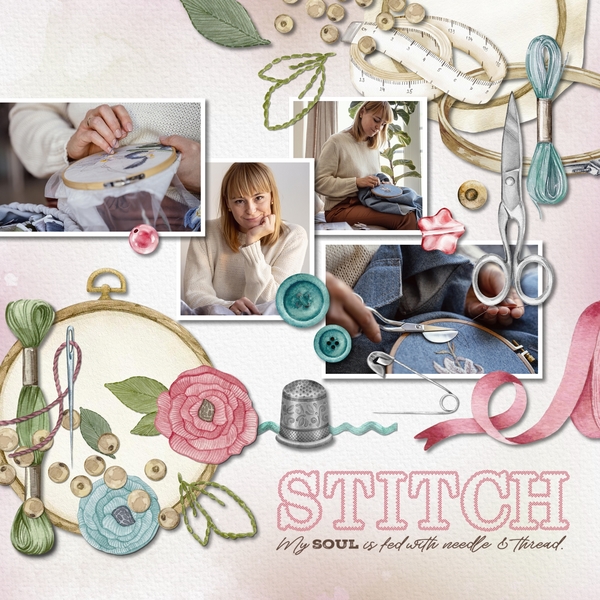 Whether you love to stitch or sew, these easy-to-use digital scrapbooking border embellishments will help you document your favorite hobby or craft - crochet, embroider, cross stitch, sew, knit, or craft with fabric. This kit is included in the Sew & Stitch Watercolor Bundle. Designer: Roxanne Buchholz, Lucky Girl Creative