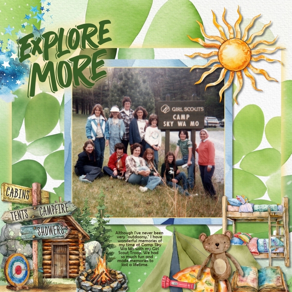 Accent your favorite camping pages with these fun watercolor embellishments and bold patterned background papers!